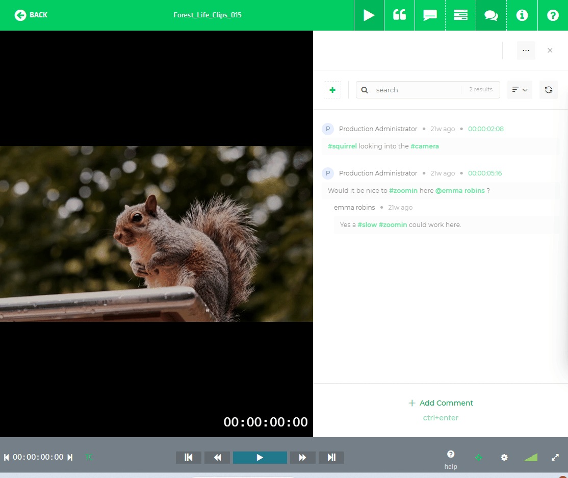 You can add general comments, comments with a timecode and with a reference to a specific region of interest in the frame. Let's have a closer look below.