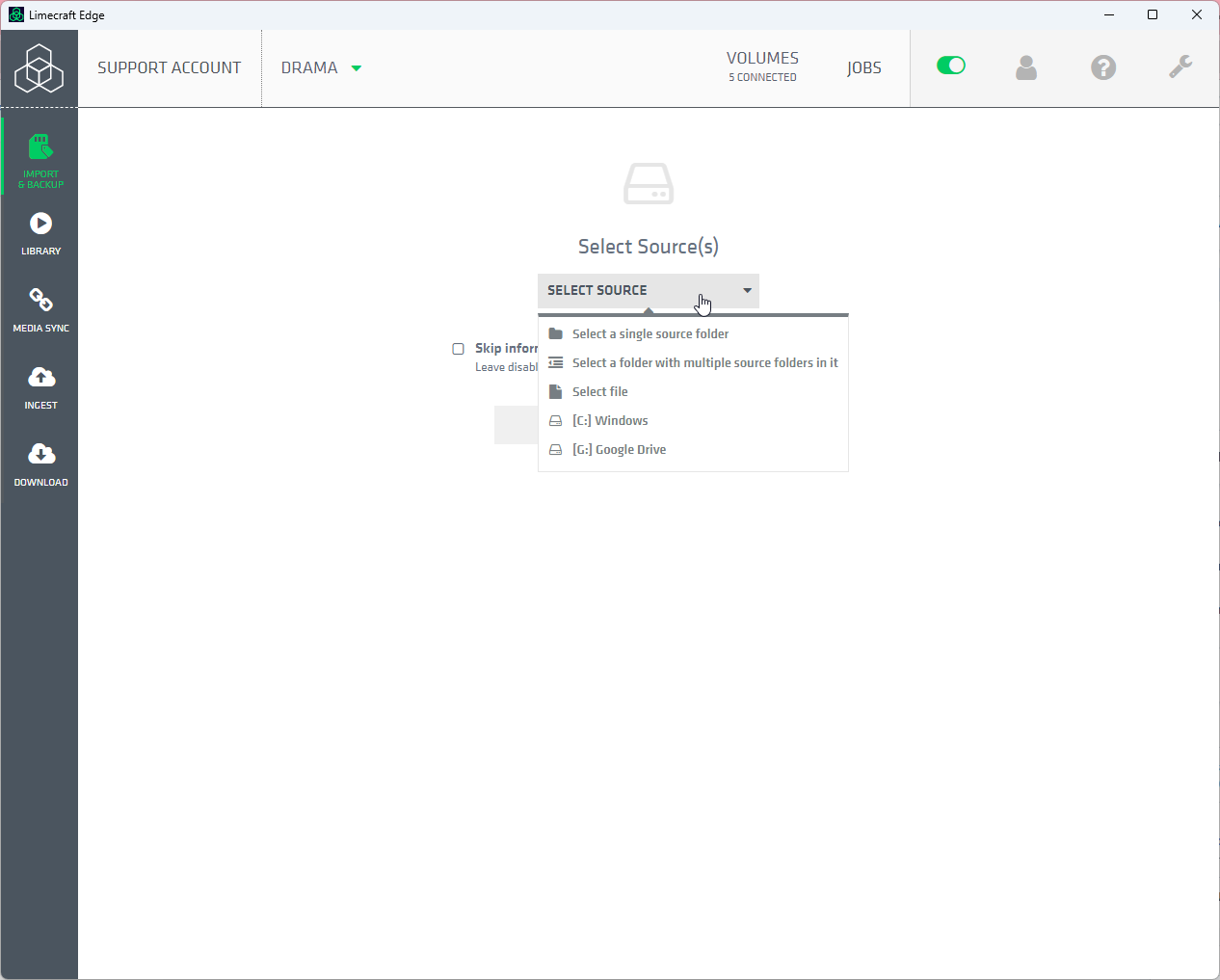 Limecraft Edge allows you to securely offload camera card media onto external drives. This enables the production crew to reuse the camera cards once the offload process is complete and the media have been verified on the external drives.