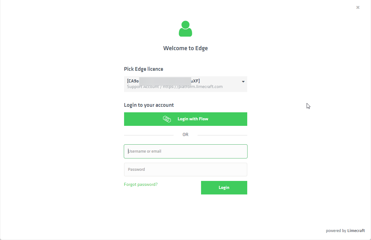 After downloading and installing Limecraft Edge, you're ready to log in. Here’s how: